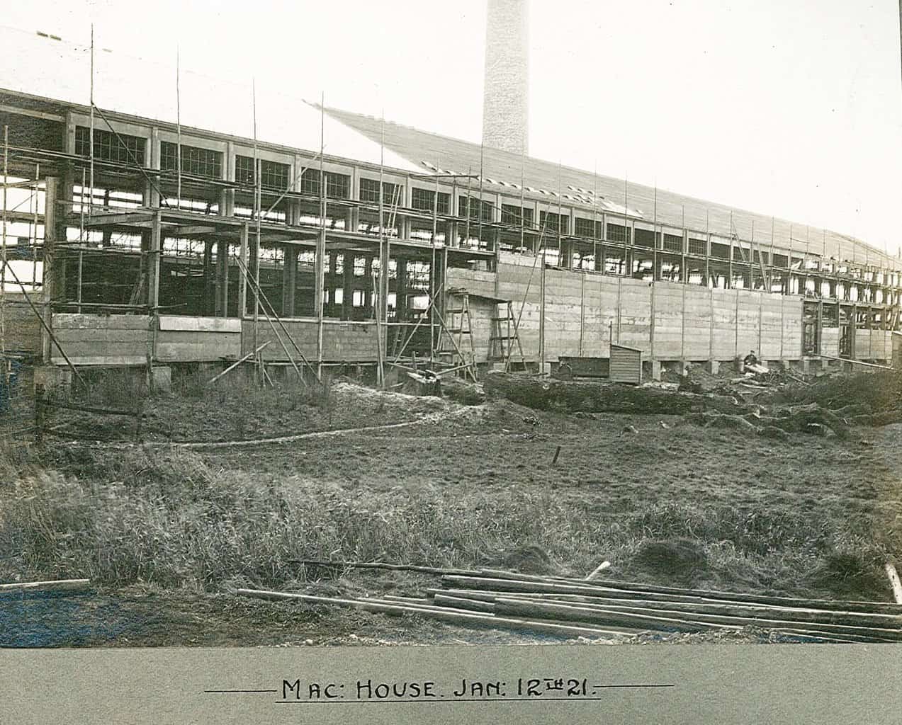 21. Machine house taking shape, roof being slated. The natural ground level in the foreground is notably lower than the eventual machine house floor level.
