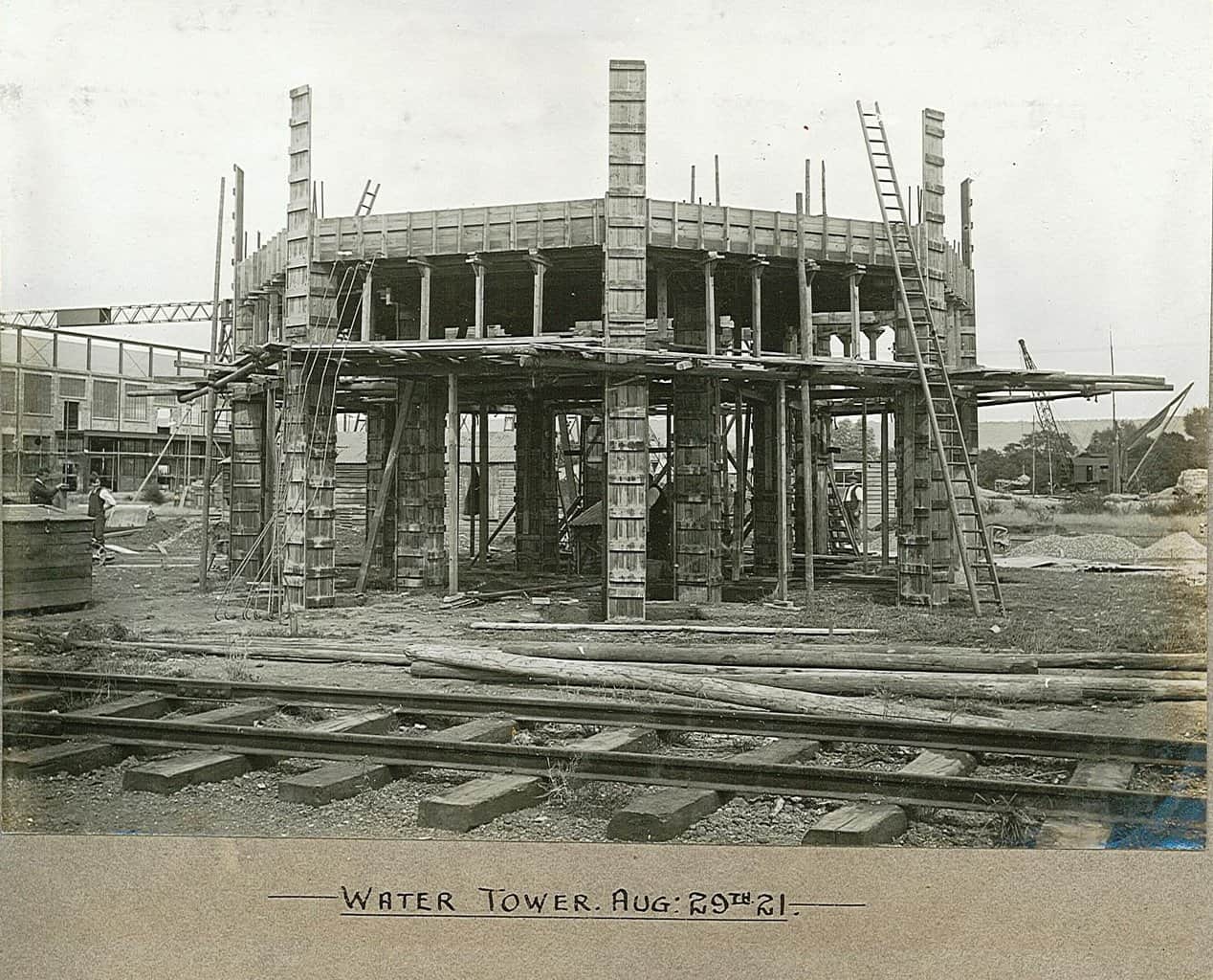 This is the original octagonal watertower, built close to where the later tall tower with ‘REEDS’ on it was built. Old plans in the W&E dept files showed a ‘well’ close to this water tower, how this worked in relation to the later reservoir pumps was not clear. However if process water for the early machines was all that was required then a well tapping the 1 or 2 aquifers under the mill site may have sufficed. The later water tower would have provided greater head to supply the much greater water demand of the East, West, No3 and Wadding (KC) mills.