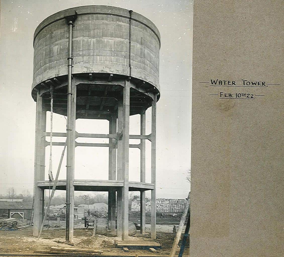 Looking towards the river, this is the original water tower, later replaced by the 6 legged, taller tower which had REEDS in large red letters on its tank, demolished with explosives in the late 1980s.