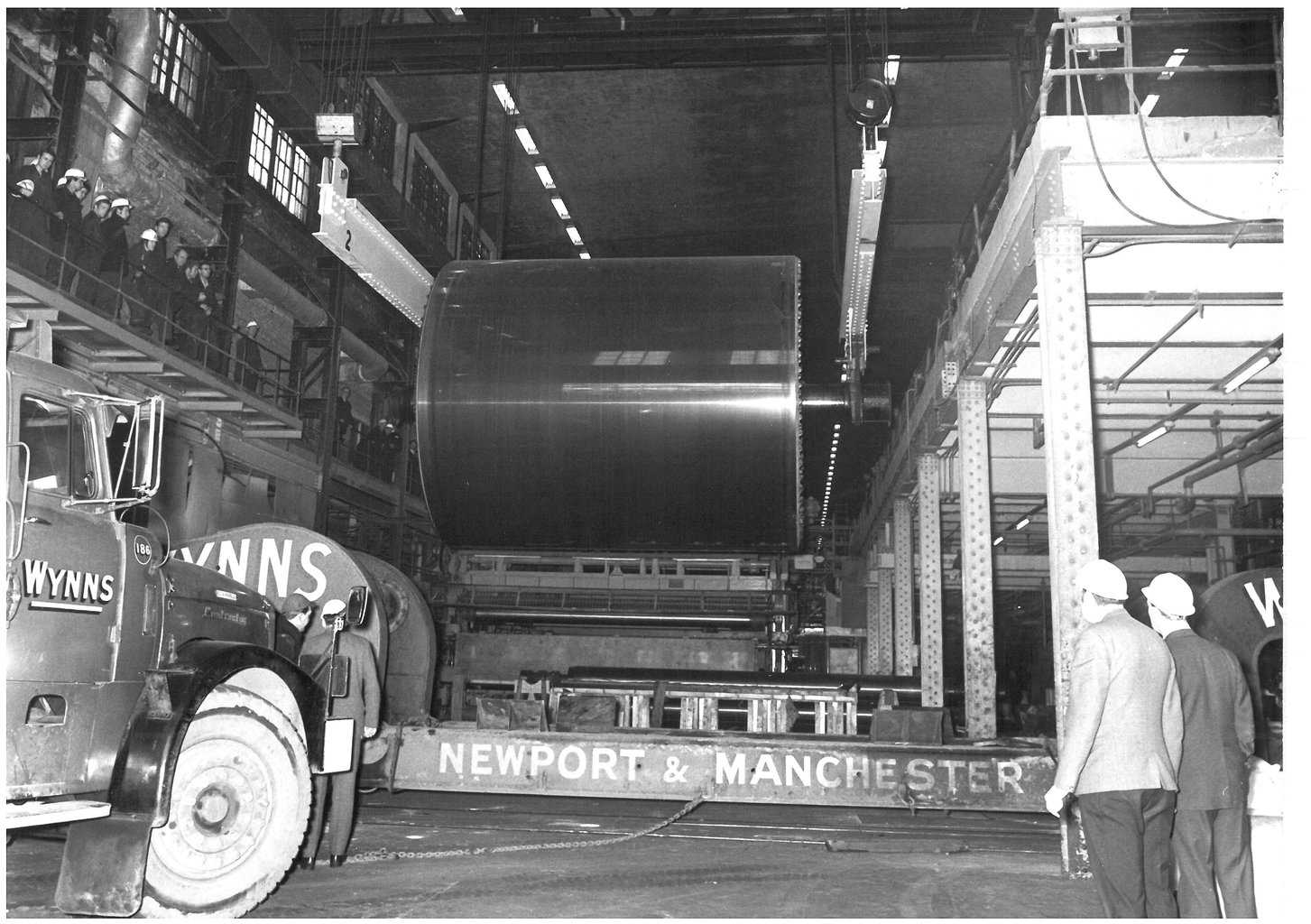 Cylinder being moved down the machine house and positioned in front of n0 9 reeler ready to be lowered onto the Wynns Heavy Haulage low loader.