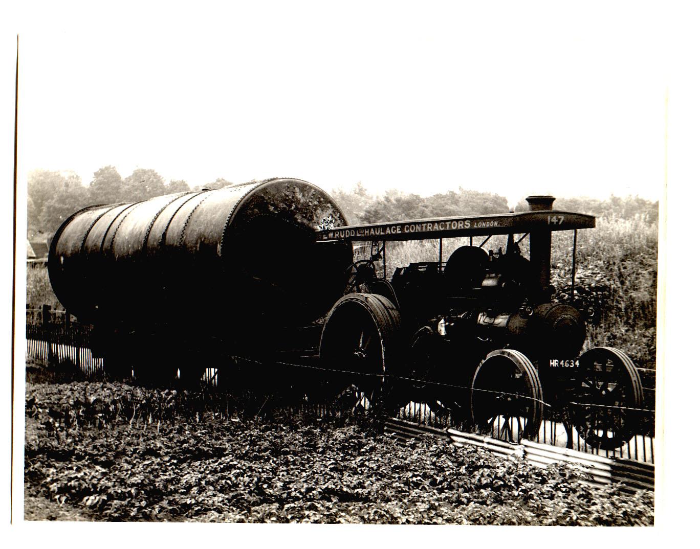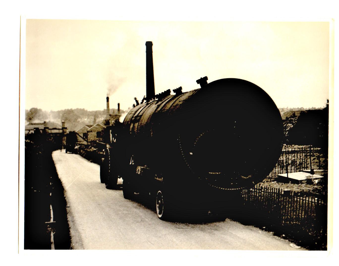 5. Another, wider, view of the boiler in transit, the smaller chimneys in the distance are Bridge Mill (Diamond Fibre, later Reed’s Bridge Mill), the houses visible beyond are the other side of the Medway in Fant, rising to the Tonbridge Road.